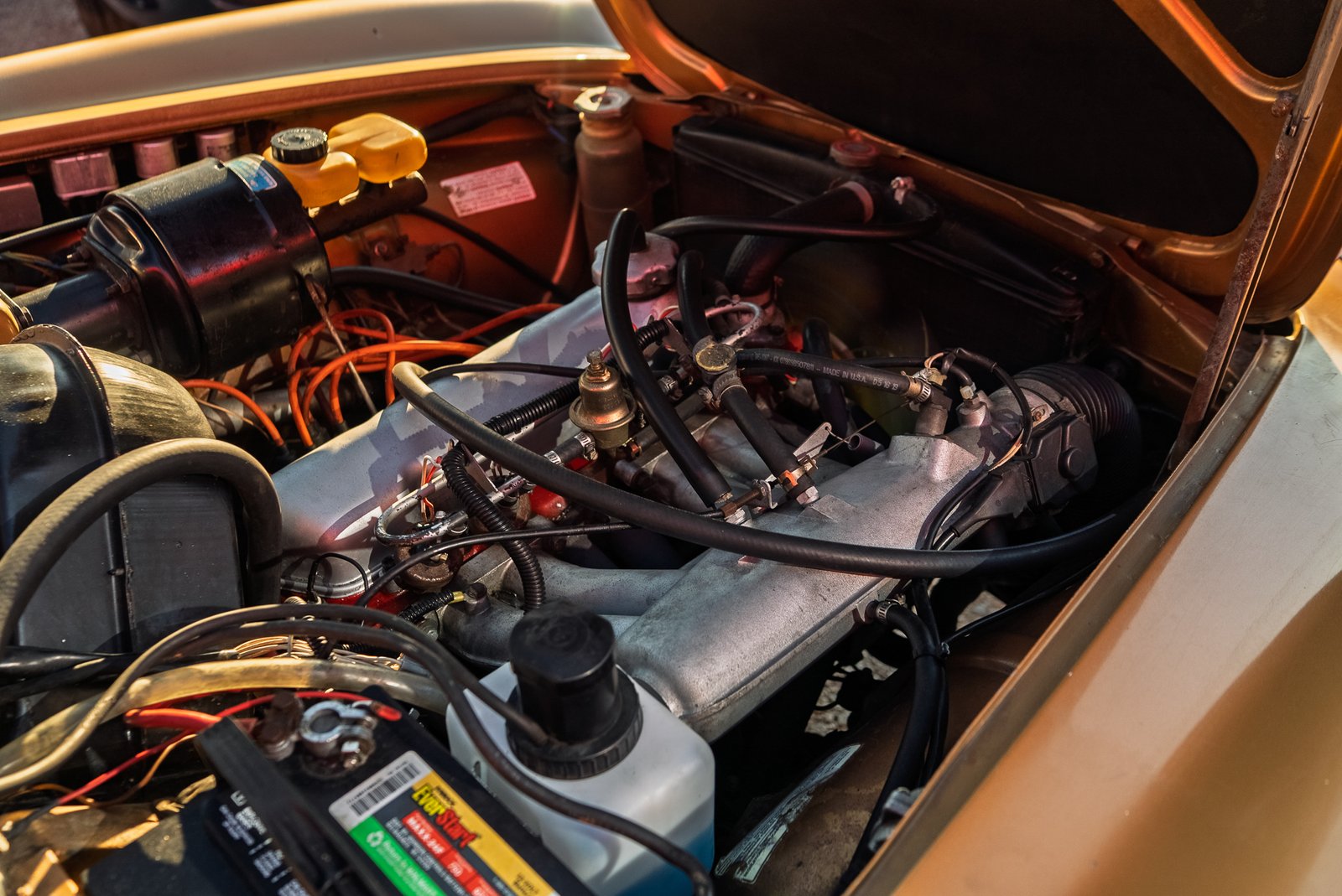 Az autó Hawaii-ról került hozzánk gyönyörű állapotban. A belső kárpitokat és szőnyegeket újra cseréltük. Az automata váltót pedig gyári Borg Warner négy sebességes váltóra cseréltük Overdrive-al.