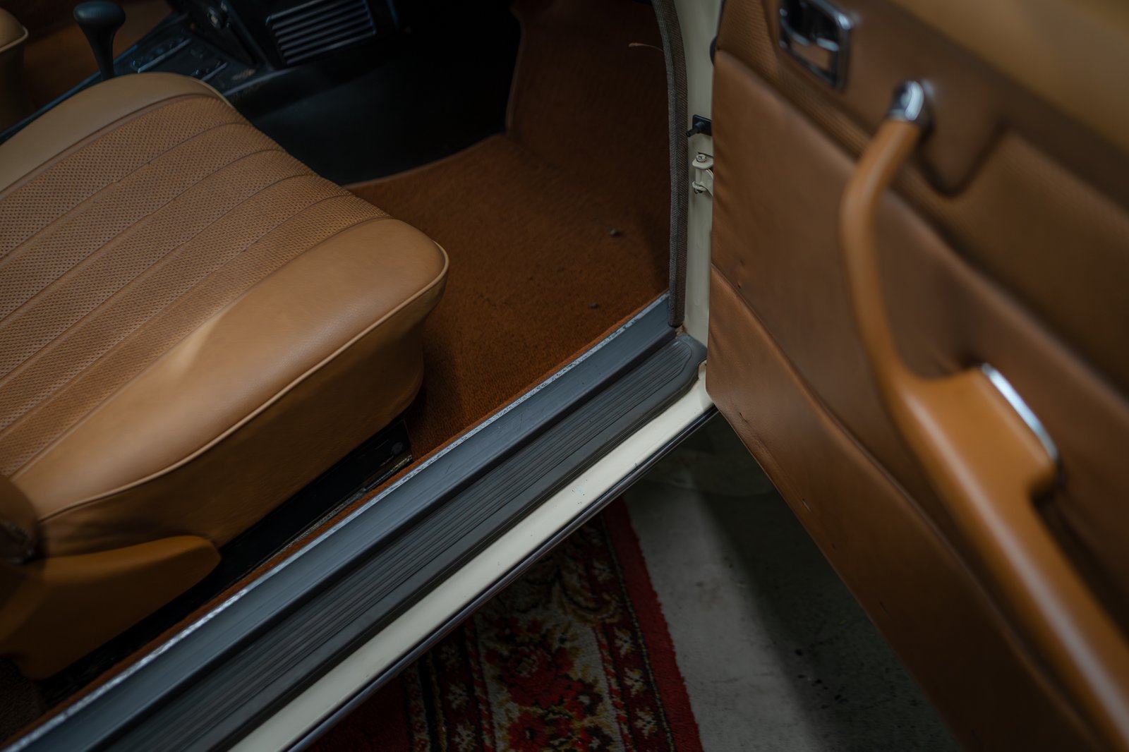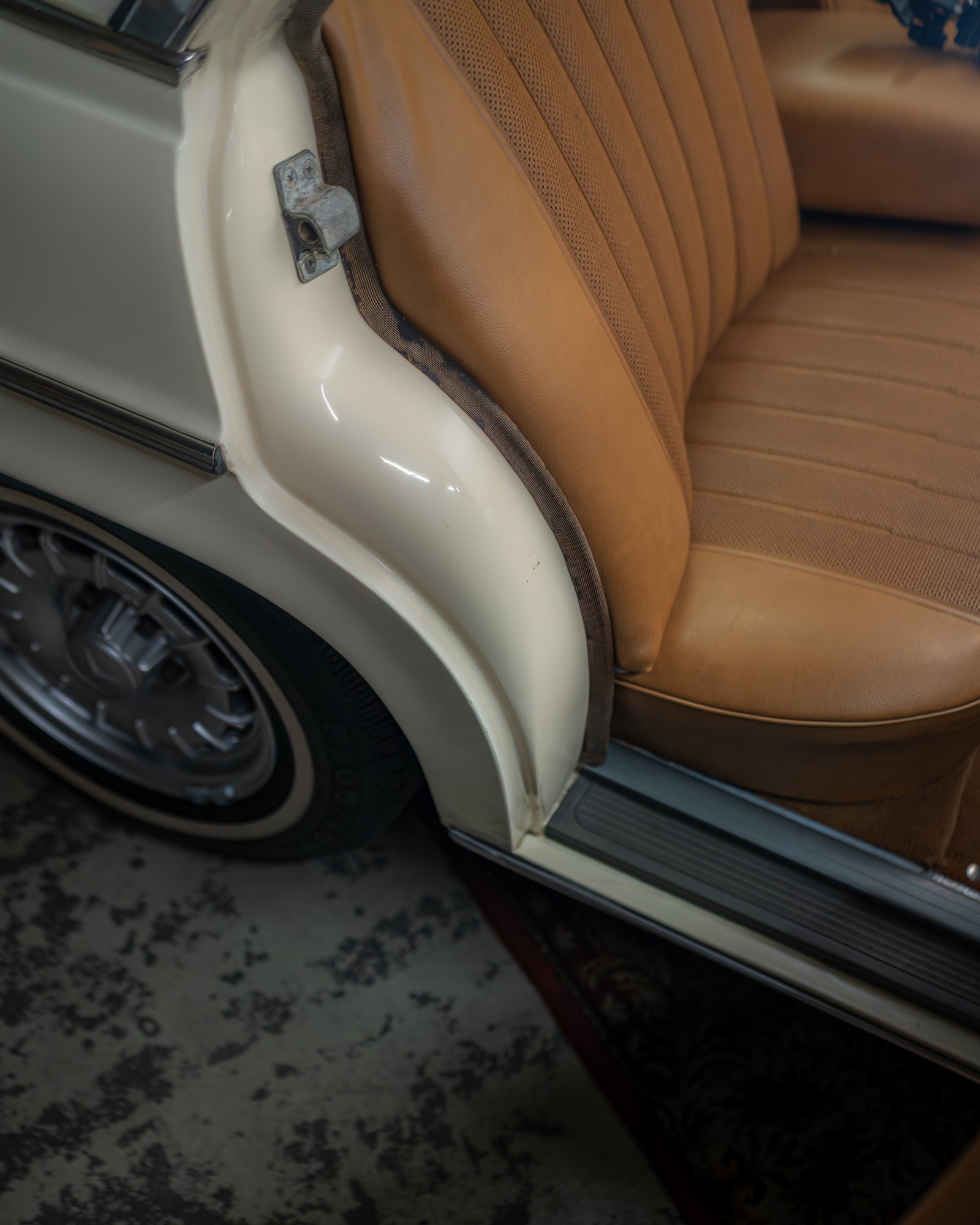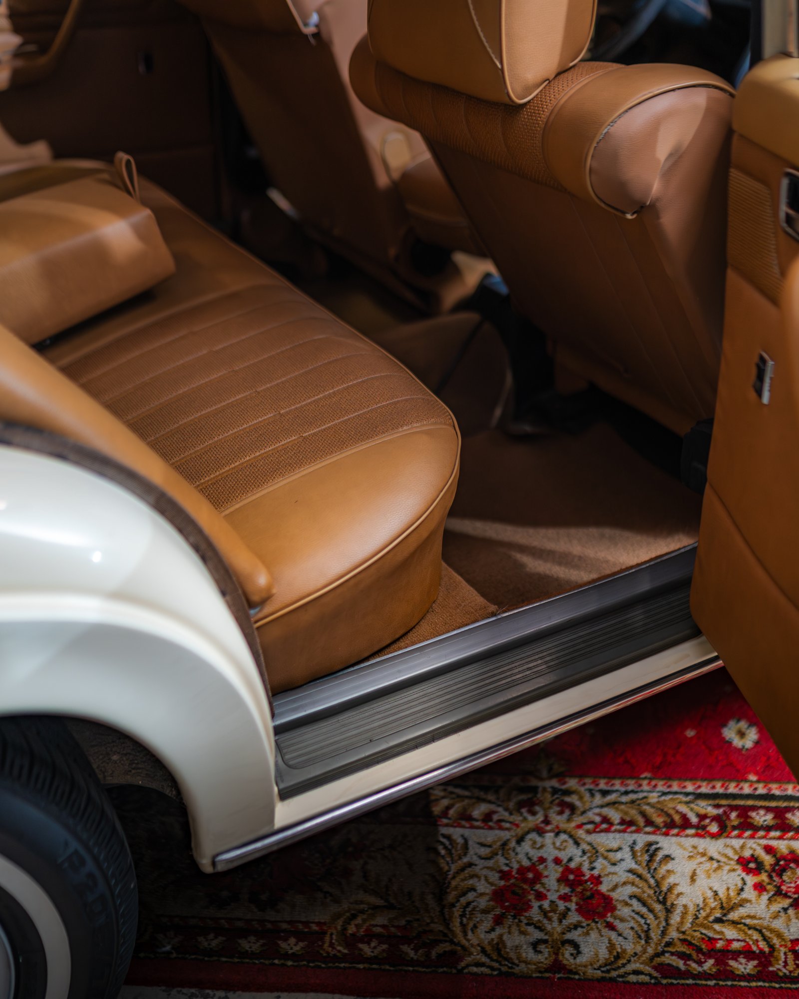 Az autóra, a kor jellegzetes KBA40383 kódjelű felnik kerültek felszerelésre, melyet fehér csíkos gumikkal párosítottak, amelyet igazán jól kiemel az autó világos fényezése. Az autó balkormányos elrendezésű, automata váltóval szerelt, benzin üzemű, valamint hátsó kerék hajtású. Az utastér világosbarna bőrrel borított, műszerfalán faberakás található.