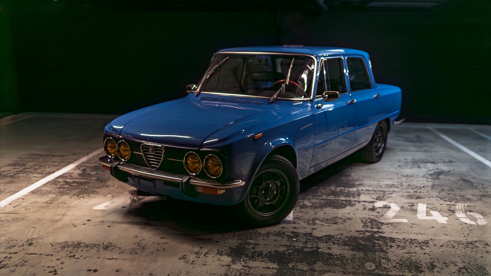 A kiállított modell egy 1978-as Alfa Romeo Giulia Super Lusso, vagy egy kifinomúltabb képviselője a Giulia családnak.
